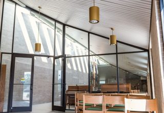 3,000sf Chapel reconfiguration for increased capacity and updated interiors. This renovation included replacement of existing custom skylites, addition of windows, structural infill, new pews & sanctuary furnishings, and all new interior finishes.